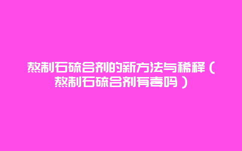 1. 熬制石硫合剂有毒吗 石硫合剂配置好后应该马上使用。 石硫合剂是一种广谱性的杀菌、杀虫剂。虽然好用但是它有个缺点,就是不耐贮存。石硫合剂是螯合态农药不是很稳定容易分解,另外石硫合剂有很难闻的臭鸡蛋味……